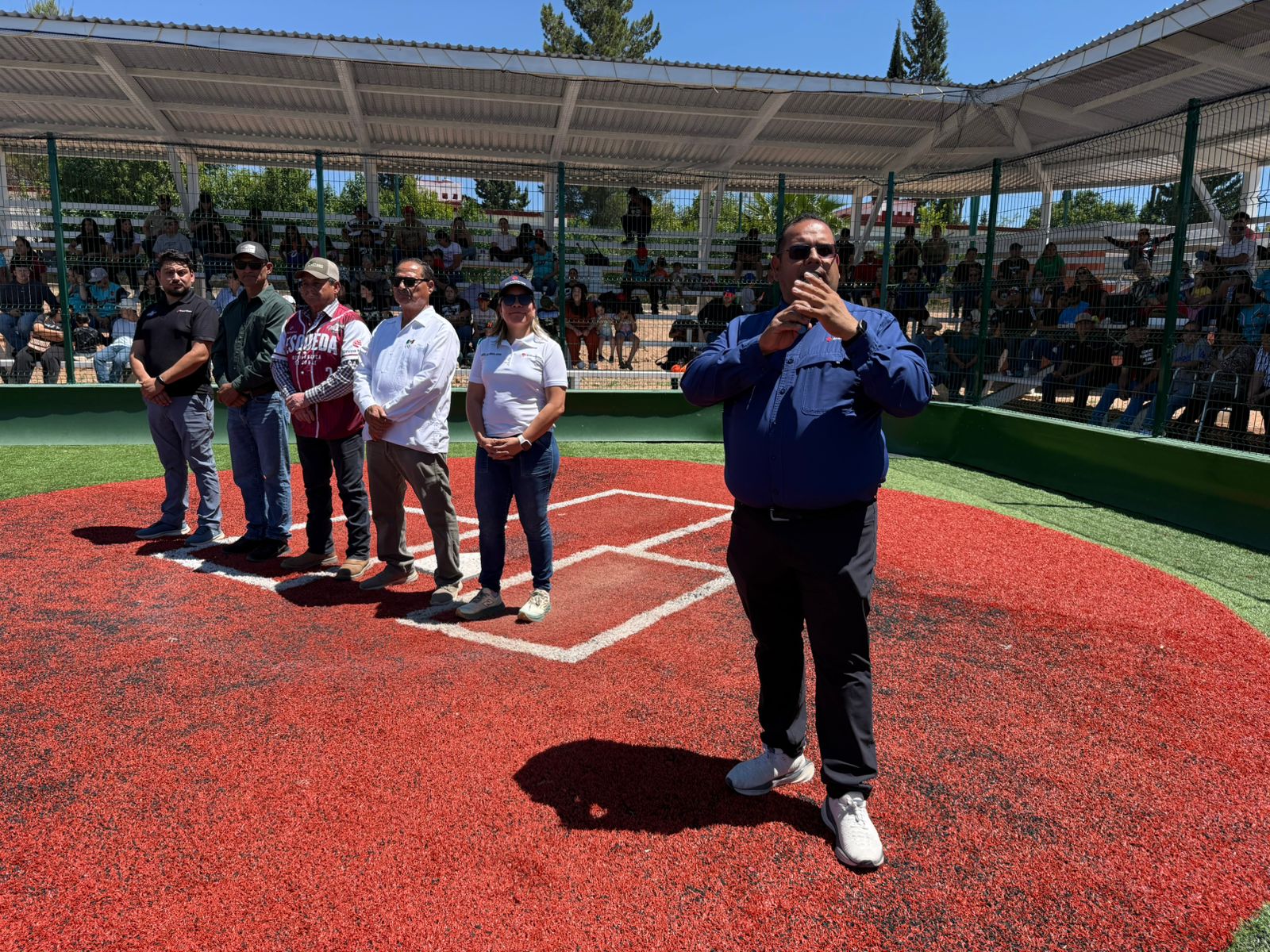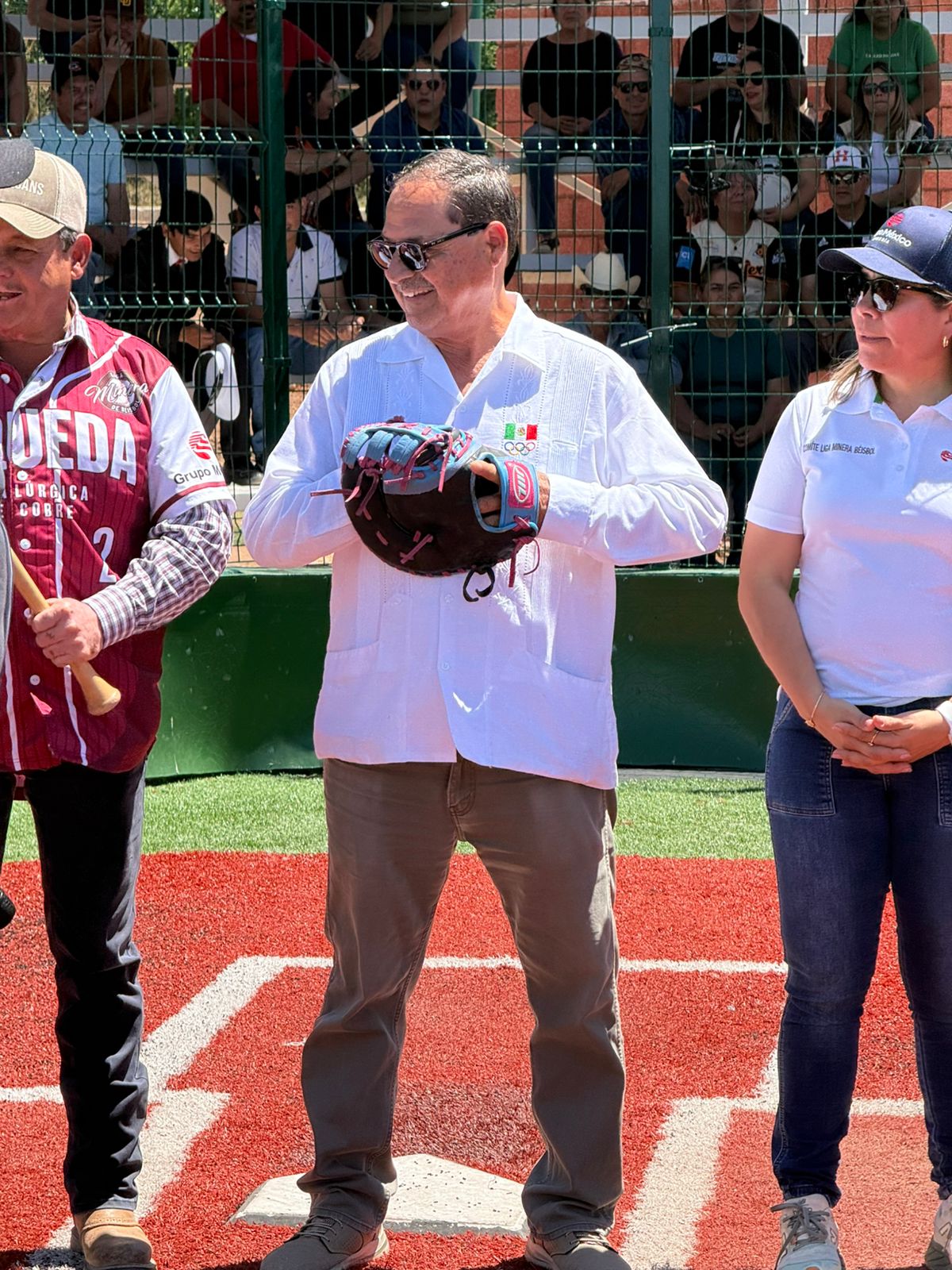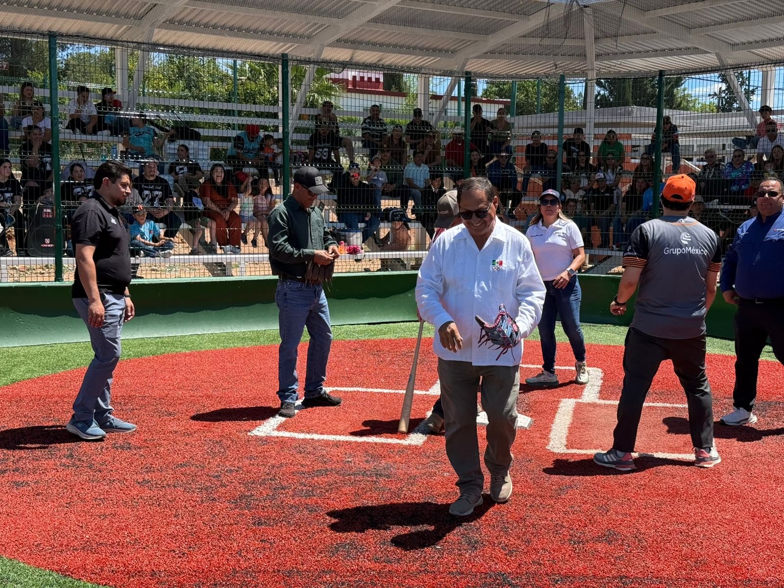 La autoridades presentes encabezadas por el presidente Municipal de Fronteras Israel Quijada acompañado de Cristóbal Vargas Rodríguez presidente de la Asociación Estatal de Beisbol del Estado de Sonora (Aebes), Victor Manuel Balandrán Jefe de desarrollo Comunitario de Grupo México