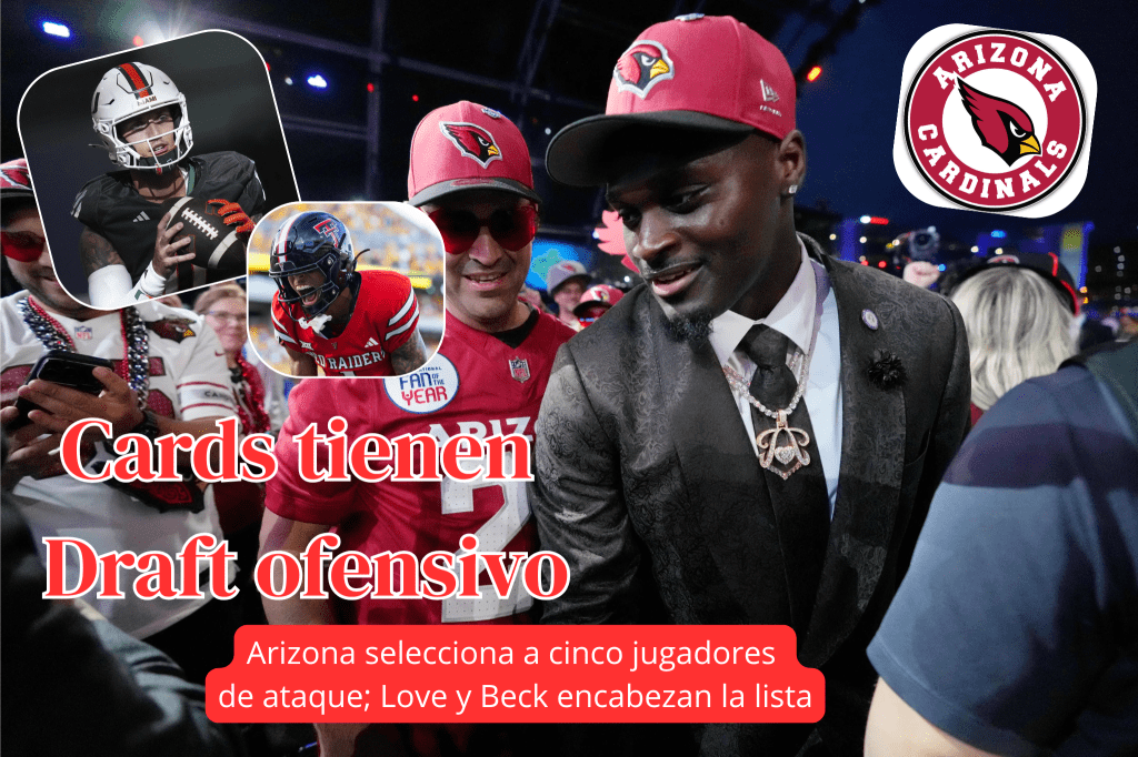 Cinco jugadores ofensivos, encabezados por el corredor de bola Jeremiyah Love, tercera selección global, fueron las adiciones de los Cardinals de Arizona en el Draft 2026 de la NFL